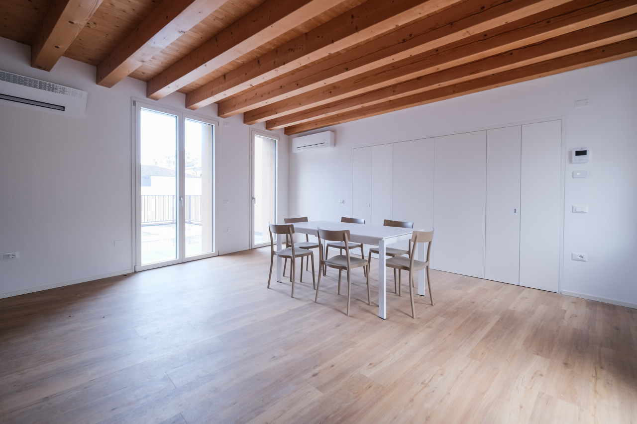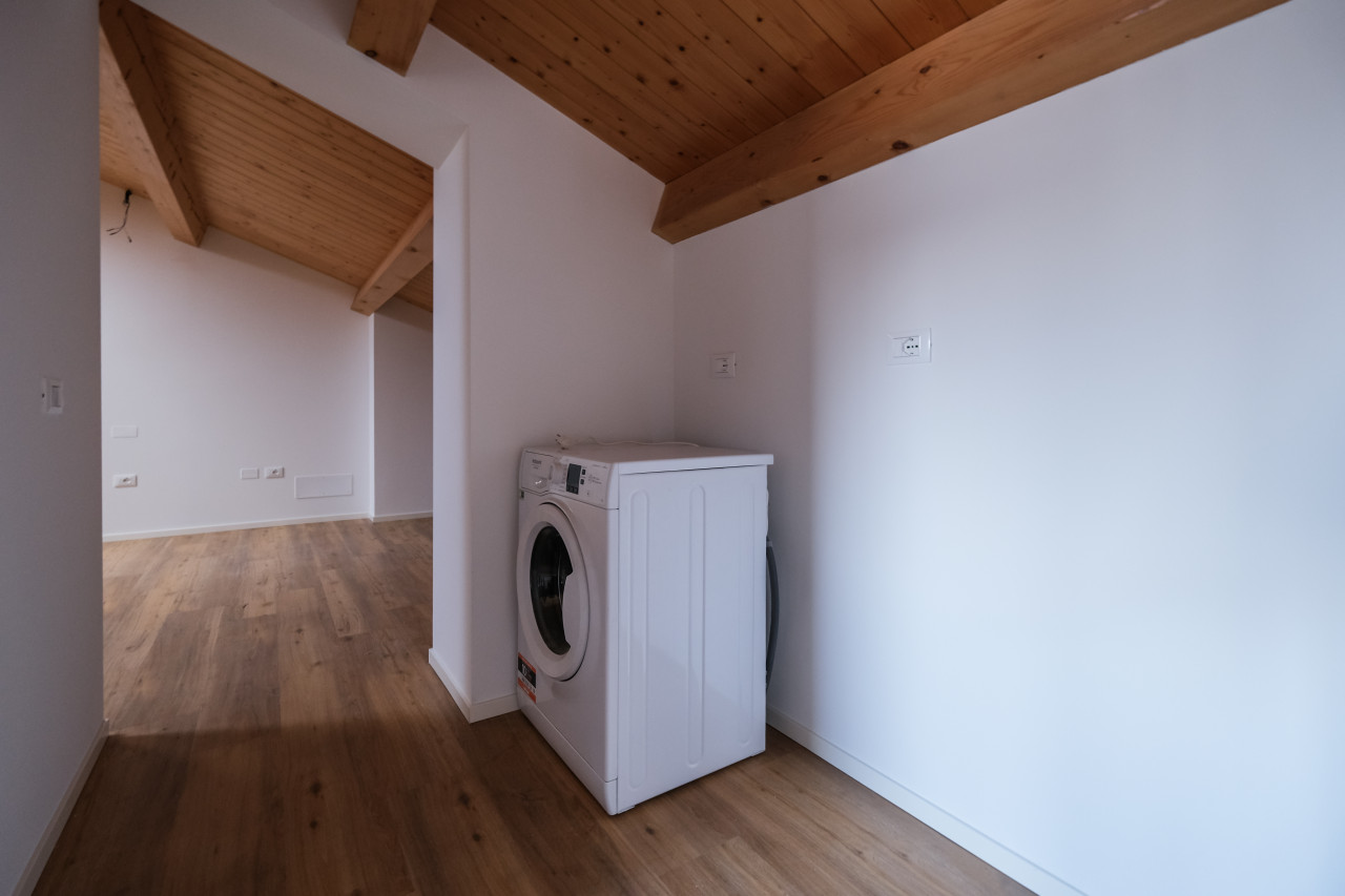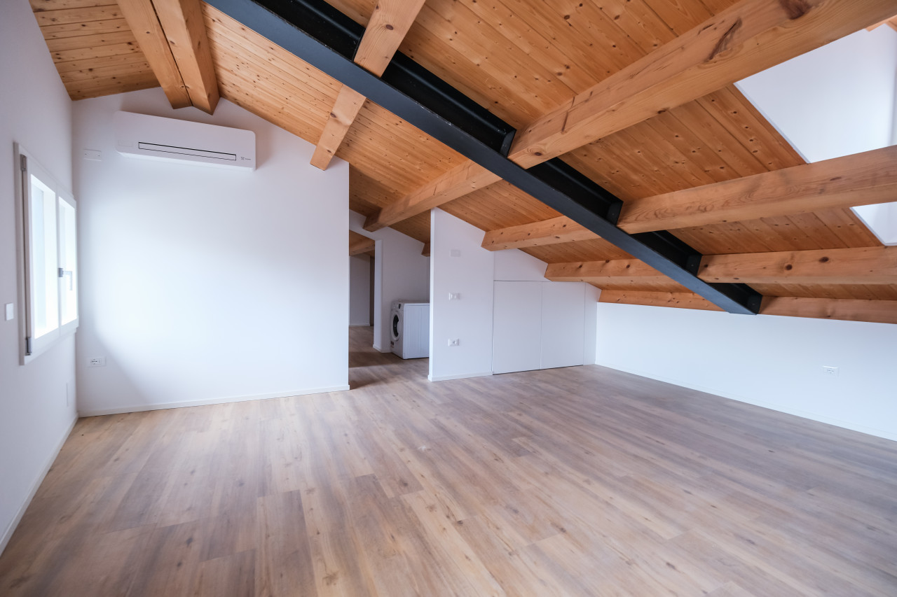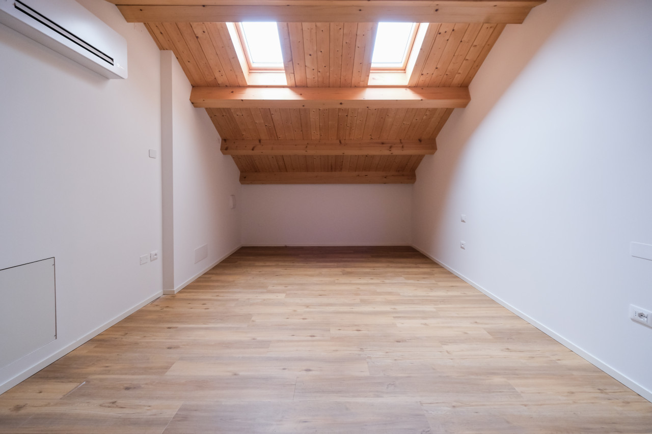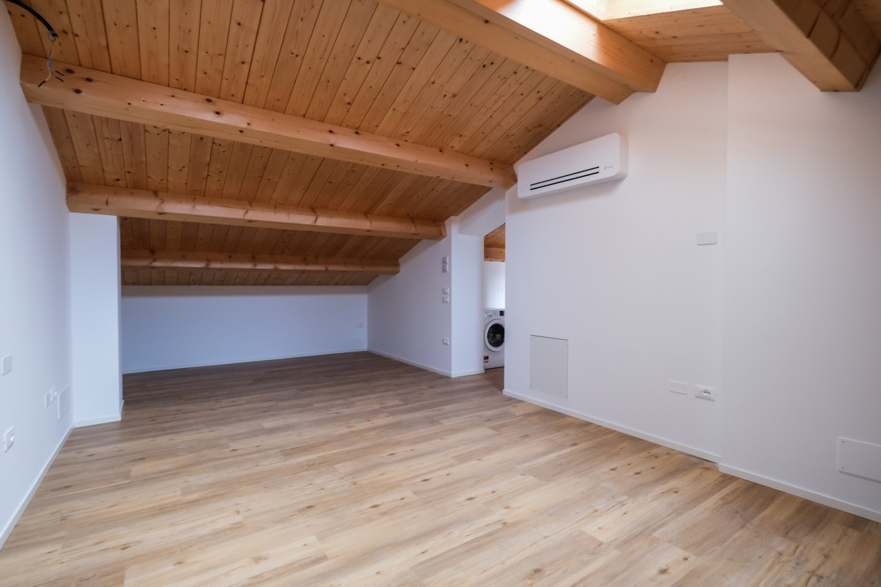 A due passi dalle vie centro storico in Piazzale Giusti, proponiamo in locazione un elegante appartamento duplex di nuova costruzione, inserito in un contesto riservato di poche unità. L’immobile si sviluppa tra primo e secondo piano, con affascinanti soffitti travati a vista, ed è caratterizzato da finiture di pregio e da un’elevata qualità costruttiva. La classe energetica A3, con pompa di calore e riscaldamento a pavimento, assicura comfort abitativo e massima efficienza nei consumi. Al piano primo si apre una zona giorno luminosa e ben distribuita, con cucina separata completa di elettrodomestici, affacciata su un ampio terrazzo abitabile, ideale per vivere l’esterno in totale privacy. Sullo stesso livello, camera matrimoniale con bagno dedicato. Il piano secondo mansardato ospita una seconda camera con bagno, oltre a un ulteriore ambiente versatile, perfetto come studio, area relax o salotto supplementare. L’appartamento viene locato con arredamento parziale in tutti gli ambienti, soluzione ideale per chi desidera un’abitazione pronta da vivere mantenendo al tempo stesso margine di personalizzazione. Completa la proprietà un posto auto scoperto all’interno del cortile privato.
