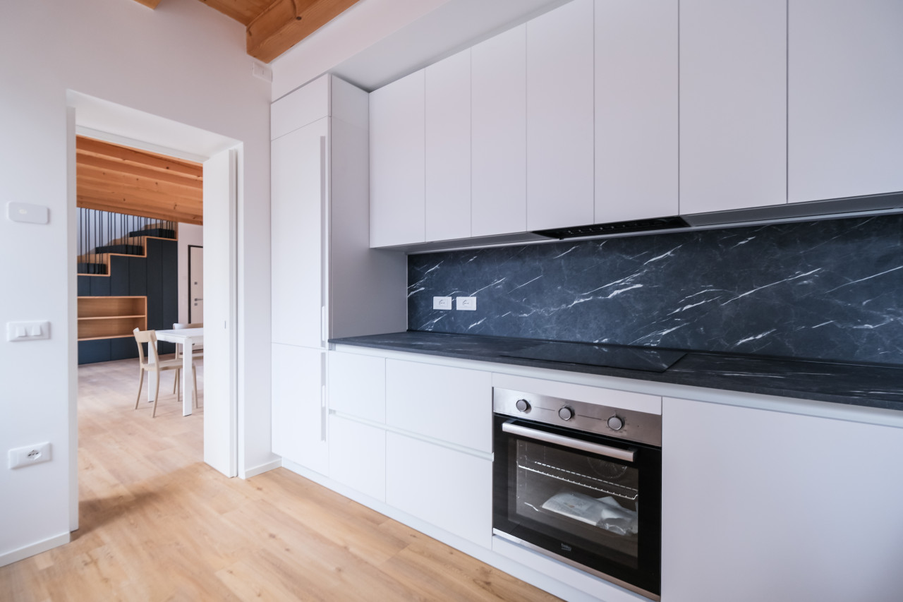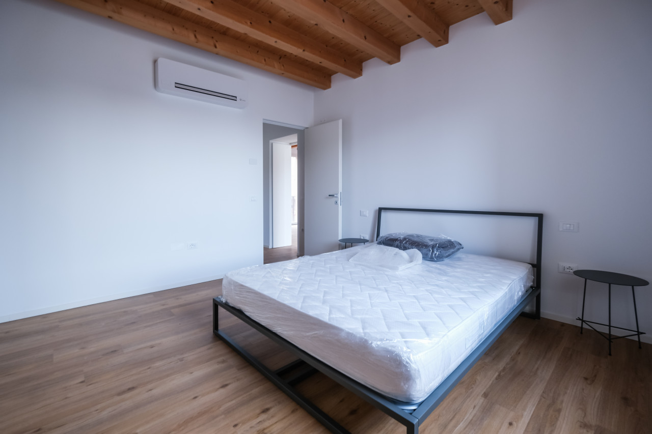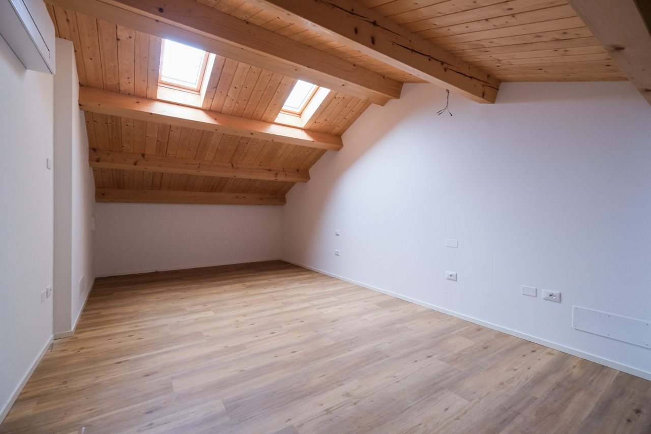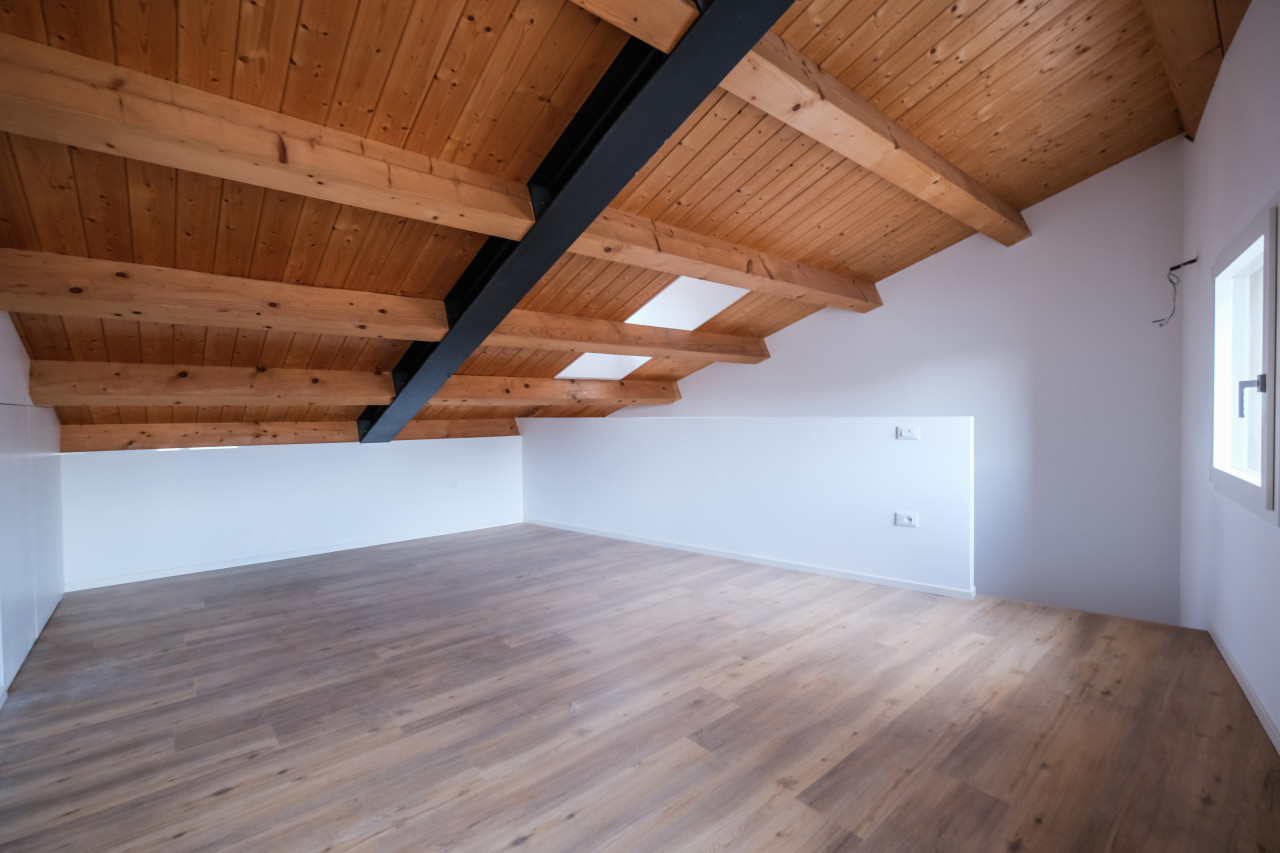 A due passi dalle vie centro storico in Piazzale Giusti, proponiamo in locazione un elegante appartamento duplex di nuova costruzione, inserito in un contesto riservato di poche unità. L’immobile si sviluppa tra primo e secondo piano, con affascinanti soffitti travati a vista, ed è caratterizzato da finiture di pregio e da un’elevata qualità costruttiva. La classe energetica A3, con pompa di calore e riscaldamento a pavimento, assicura comfort abitativo e massima efficienza nei consumi. Al piano primo si apre una zona giorno luminosa e ben distribuita, con cucina separata completa di elettrodomestici, affacciata su un ampio terrazzo abitabile, ideale per vivere l’esterno in totale privacy. Sullo stesso livello, camera matrimoniale con bagno dedicato. Il piano secondo mansardato ospita una seconda camera con bagno, oltre a un ulteriore ambiente versatile, perfetto come studio, area relax o salotto supplementare. L’appartamento viene locato con arredamento parziale in tutti gli ambienti, soluzione ideale per chi desidera un’abitazione pronta da vivere mantenendo al tempo stesso margine di personalizzazione. Completa la proprietà un posto auto scoperto all’interno del cortile privato.