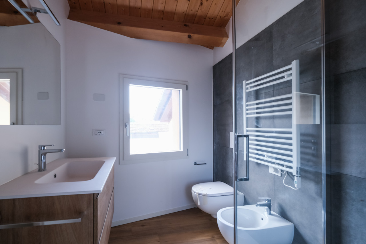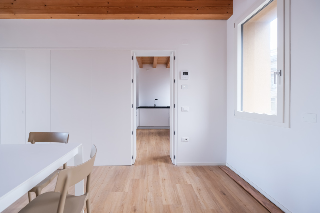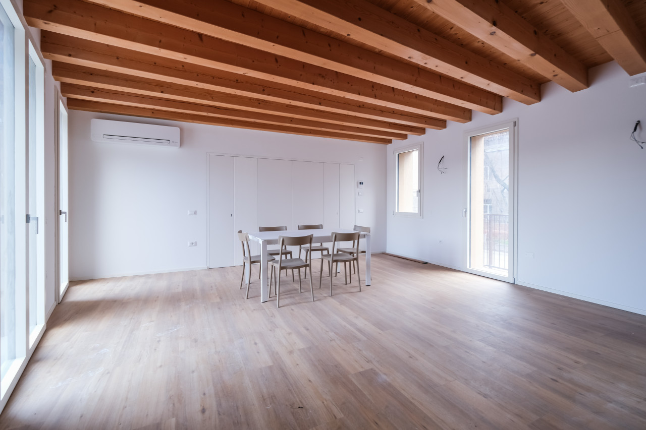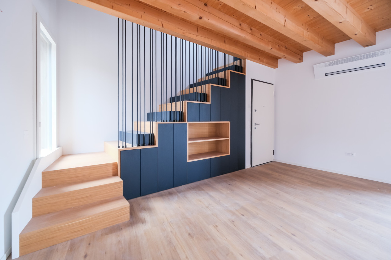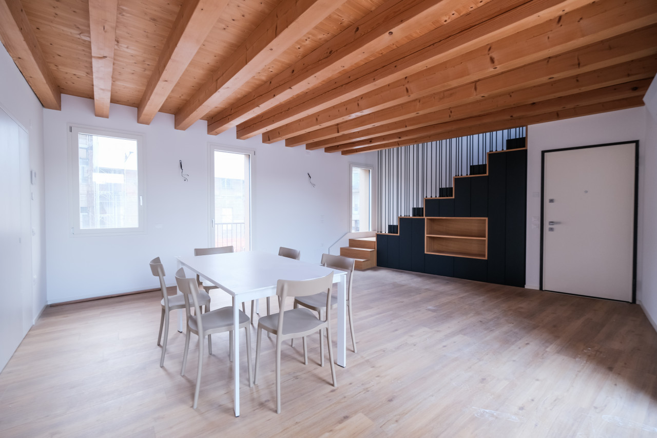 A due passi dalle vie centro storico in Piazzale Giusti, proponiamo in locazione un elegante appartamento duplex di nuova costruzione, inserito in un contesto riservato di poche unità. L’immobile si sviluppa tra primo e secondo piano, con affascinanti soffitti travati a vista, ed è caratterizzato da finiture di pregio e da un’elevata qualità costruttiva. La classe energetica A3, con pompa di calore e riscaldamento a pavimento, assicura comfort abitativo e massima efficienza nei consumi. Al piano primo si apre una zona giorno luminosa e ben distribuita, con cucina separata completa di elettrodomestici, affacciata su un ampio terrazzo abitabile, ideale per vivere l’esterno in totale privacy. Sullo stesso livello, camera matrimoniale con bagno dedicato. Il piano secondo mansardato ospita una seconda camera con bagno, oltre a un ulteriore ambiente versatile, perfetto come studio, area relax o salotto supplementare. L’appartamento viene locato con arredamento parziale in tutti gli ambienti, soluzione ideale per chi desidera un’abitazione pronta da vivere mantenendo al tempo stesso margine di personalizzazione. Completa la proprietà un posto auto scoperto all’interno del cortile privato.