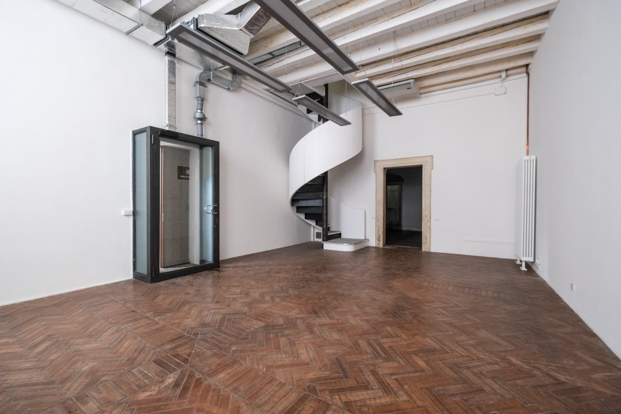 Palazzo Bonin Longare è un palazzo progettato da Andrea Palladio verso la fine del 1.500 ed edificato da Vincenzo Scamozzi dopo la morte del maestro; dal 1994 è inserito, assieme alle altre architetture palladiane di Vicenza, nella lista dei patrimoni dell’umanità dell’UNESCO, nel palazzo trovano la sua sede sale riunioni ed uffici della sede di Confindustria Vicenza. L’ufficio proposto in locazione si sviluppa al piano terra dello stabile ed è possibile accedervi direttamente dallo splendido porticato, che affaccia su corso Palladio. L’immobile è suddiviso in tre ambienti ben distinti, tutti dotati di un ingresso indipendente, che permettono grande flessibilità in fase di organizzazione degli spazi; l’open space più importante inoltre presenta una scala a chiocciola che lo collega ad un quarto spazio soppalcato di circa 25mq, sfruttabile come ufficio, defilato rispetto agli altri ambienti dell’immobile. Le volte affrescate e scolpite, assieme al fascino del palazzo storico, rendono l’immobile proposto di estremo pregio; inoltre, la presenza della massima organizzazione di imprese manufatturiere e servizi all’interno del palazzo, lo rende estremamente appetibile per tutte le attività che operano nel mondo dell’imprenditoria. A completare la soluzione un posto auto nel parcheggio privato del palazzo, con accesso da Piazza Castello.