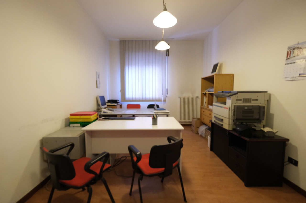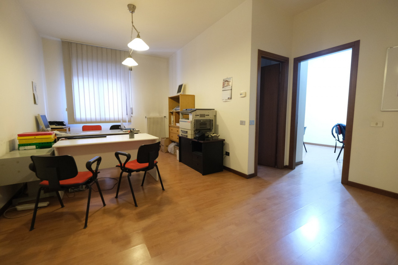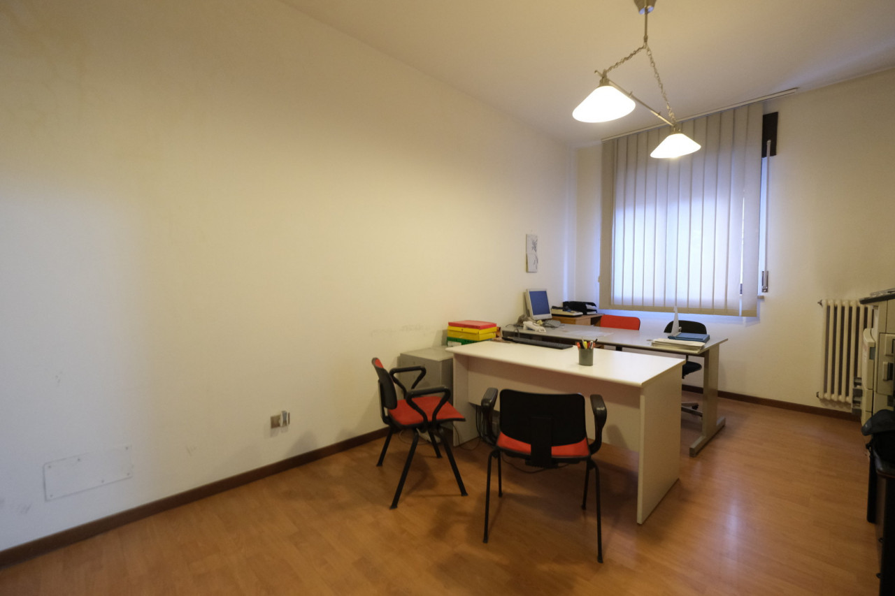 Inserito all’interno di un palazzo degli anni 60, ristrutturato esternamente ad inizio anni 2000, l’ufficio è situato al primo piano ed è servito da ascensore. L’immobile è suddiviso in due ambienti da poter sfruttare entrambi come uffici o, in alternativa, sfruttando il primo ambiente come ingresso/reception e il secondo come ufficio privato. L’ufficio è dotato inoltre di bagno con antibagno e accesso ad un terrazzo esterno ad uso comune con le unità immobiliari confinanti. Abbinato all’immobile il 50% di un autorimessa al piano interrato.